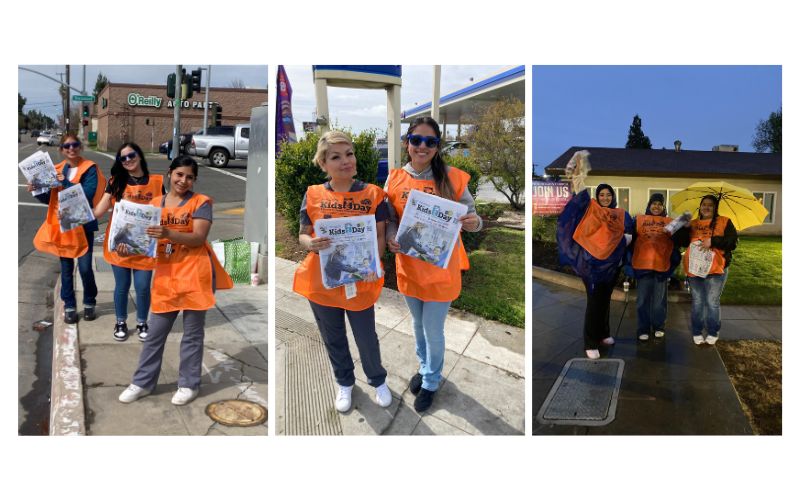 Around three dozen SJVC students signed up for one of three-location intersections of shifts that started at 6:00 AM. It was a cold and rainy morning, selling special edition ‘Kids Day’ newspapers. “The rain might have helped us out a little bit, because people felt so bad we were out there in it with our newspapers,” says Andrea.